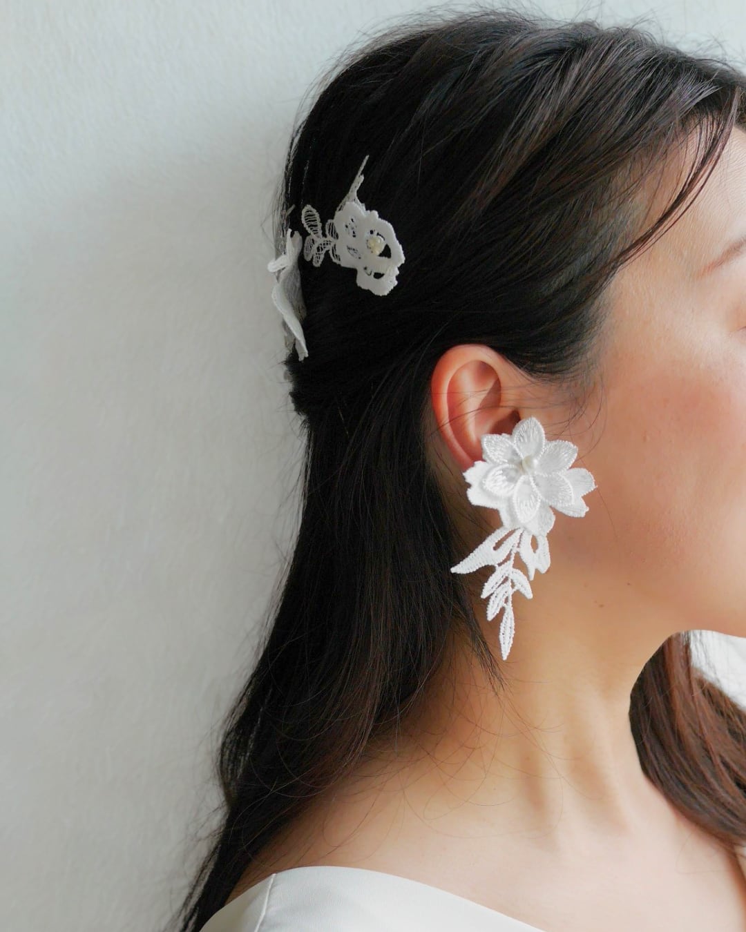 軽やかに、やさしく華やぐ。大人花嫁のためのレースイヤリング