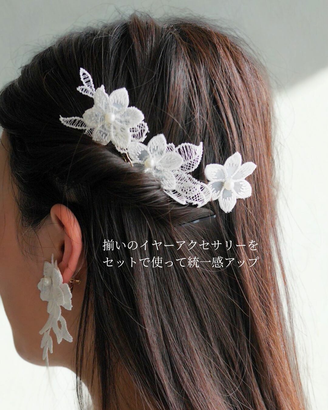 ブライダル ヘッドドレス|ナチュラル ウェディング ヘア小物 フラワーレースピン5本セット=Fleurirフルリール | 自然体×モダン ブライダルアクセサリー MAVIEBELLW(マヴィベル)