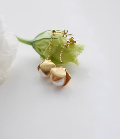 可愛らしい小ぶりの丸いフォルムに、上品なゴールドと淡水パールを組み合わせた、シンプルで大人可愛いアクセサリー。