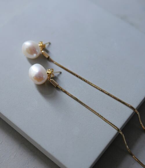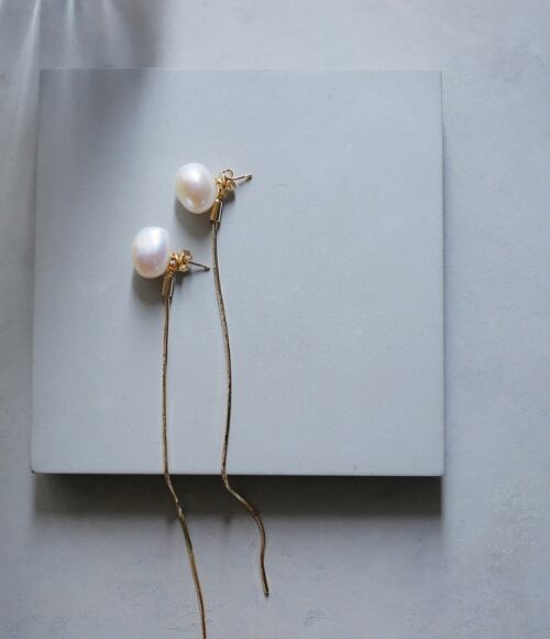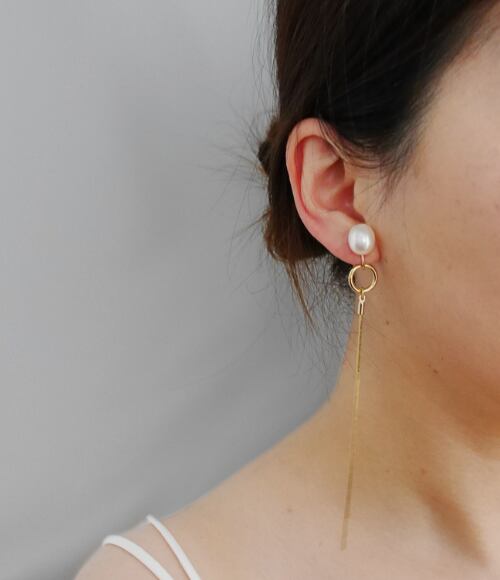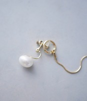 トレンド感のある大粒の変形淡水パールが、耳元に上品な輝きをプラス。シンプルなデザインながら、取り外し可能なチェーンでパッとイメージチェンジができる2way仕様。