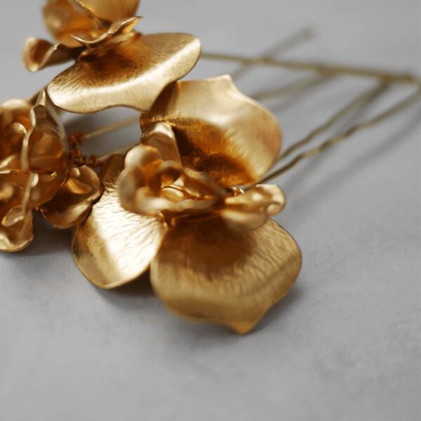 U字ピン付きの小花3本セットで、バラのような優美さを持ちながら、ナチュラルな雰囲気も感じられるデザインが魅力です。